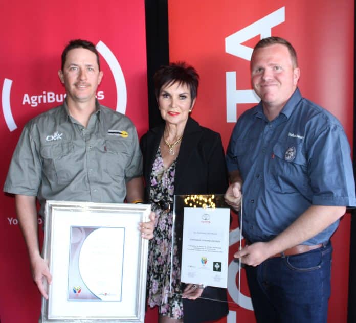 Loeriesfontein Landbou-unie is vanjaar as die beste unie in die Noord-Kaap aangewys. Tydens die kongres het Franchwa Batt (links) die toekenning van Brendon Jacobs van Standard Bank ontvang.