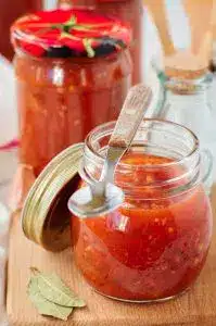 - Tomato jam: Tomato jam is produced from green or ripe tomatoes. Jam is a product which consists of whole fruit, pieces of fruit, fruit pulp or fruit puree of one or more types of fruit with fruit juice or concentrated fruit juice as an optional ingredient, and may contain permitted food additives and sweeteners.