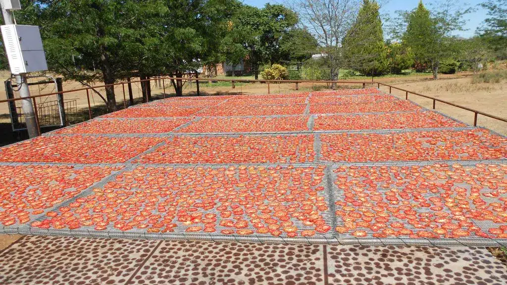 - Sun-dried tomatoes: Sun-dried tomatoes are produced by drying ripe tomato slices under shade cloth, out of direct sunlight. Tomatoes are dried in the form of halves, quarters or slices. The final product has a brown colour, distorted shape and does not rehydrate well.