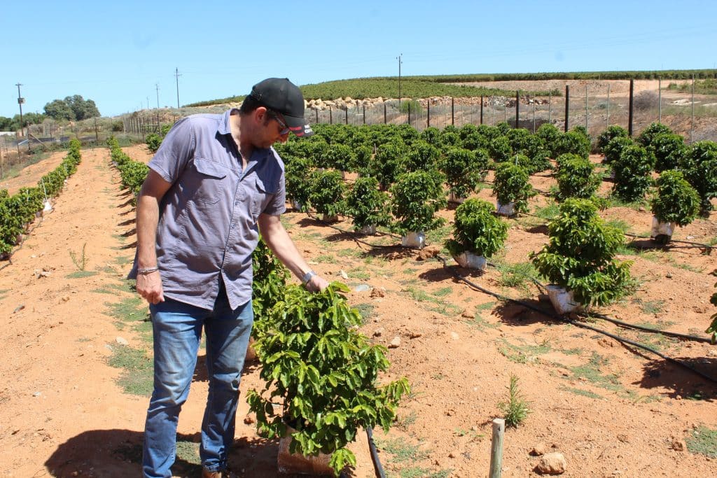 “Die boompies het omtrent 1m hoog geword en ek het begin wonder wat die volgende stap is. Hoe gemaak wanneer die boompies begin dra? Hoe rooster ’n mens die bone? Ons het baie navorsing gedoen en besluit om ’n koffieplantasie in Lutzville te vestig. Mense het ons daarteen gewaarsku, aangesien koffiebome ’n tropiese klimaat verkies en die hoogte bo seespieël nie in ons guns tel nie. Die groot temperatuurverskille waaraan ons gewoond is, is iets wat die koffiebome nie verdra nie. Ten spyte van al hierdie faktore het ons 100 boompies aangeskaf en in 2019 hier kom plant. Die helfte van die boompies het egter gevrek nog voordat ons hulle kon plant, maar die ander helfte is nou omtrent 2m meter hoog. Verlede jaar het ons ’n goeie oes gehad,” vertel hy.