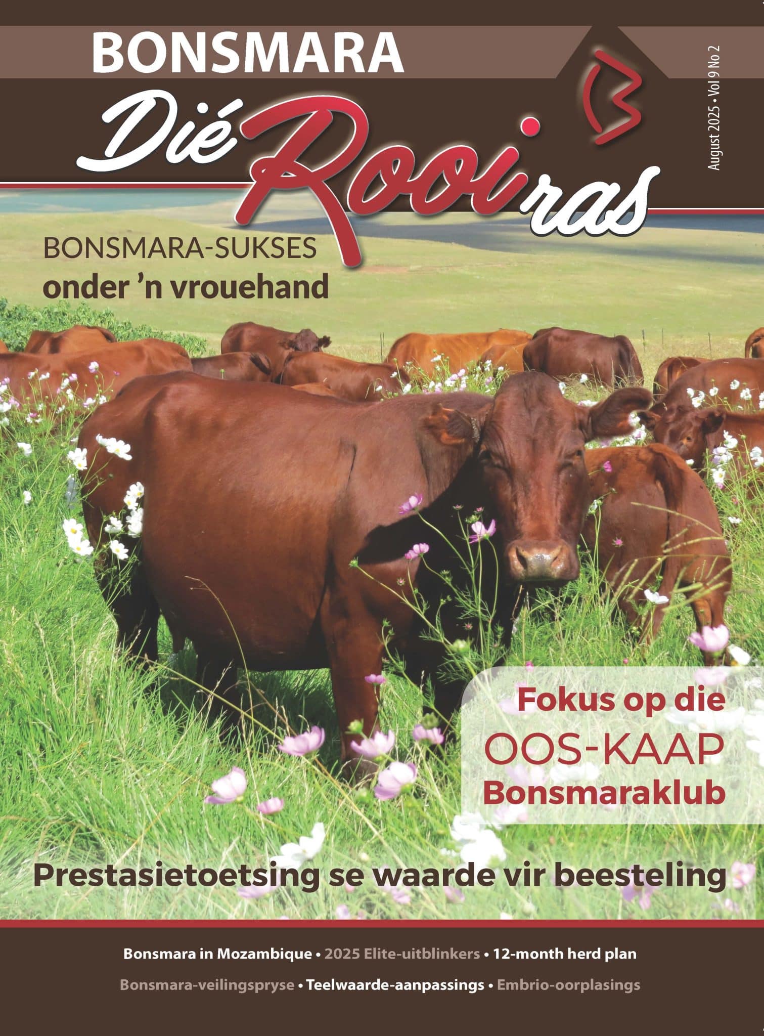 Dié Rooi Ras / The Red Breed is a biannual publication on behalf of Bonsmara SA. The magazine addresses issues relating to breed genetics, breeding practices, red meat production, breeding values, and much more. The magazine is distributed as a supplement to Veeplaas and Stockfarm, and is also distributed by Bonsmara SA to its members and at society events. Contact us: lynette@plaasmedia.co.za
