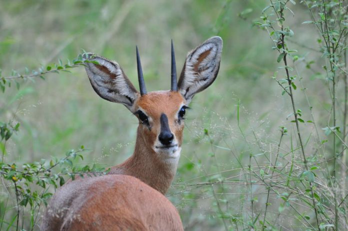| Rooiduiker | Sandwoude, digte bosse, ruigtes langs rivieroewers. | Nee | Hoogs selektiewe blaarvreter, vrugte en kruidagtige blomplante. | 12 | 14 |
