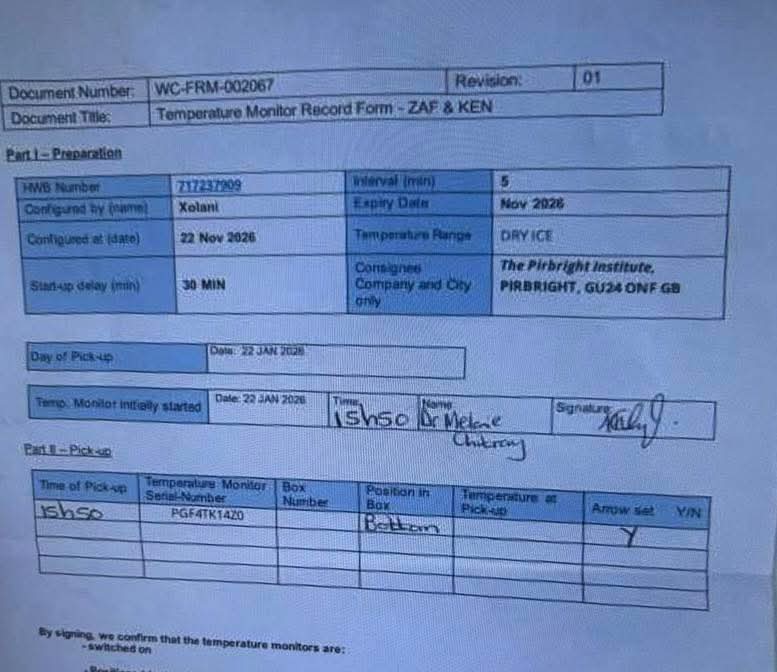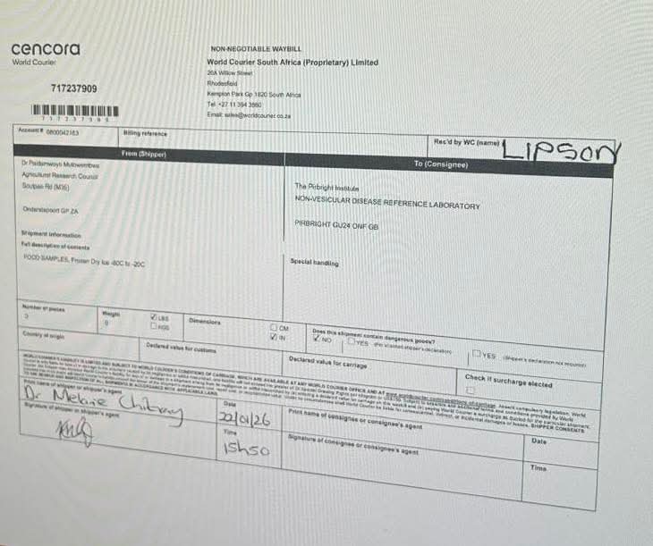 On the waybill, it states it is sent to the ‘Non-Vesicular Disease Reference