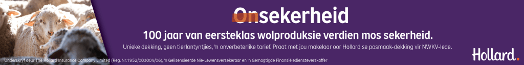 Nou, in hierdie feesjaar, het die NWKV en Hollard weer om ‘n tafel gaan sit en hulself afgevra hoe hierdie oplossing verder belyn kan word met die besondere uitdagings wat wolprodusente in die gesig staar. By Hollard glo ons dat NWKV-lede ‘n tasbare voordeel moet trek uit enige sodanige oplossing en dat dit tot voordeel van produsente, die NWKV, asook die groter landbouomgewing moet strek.