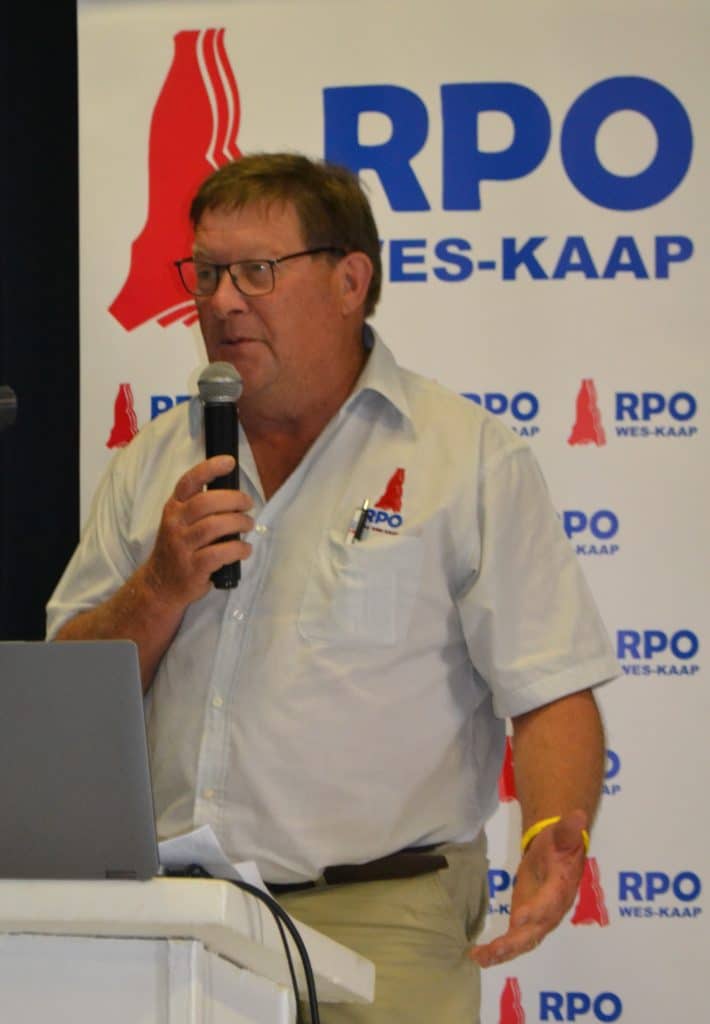 Jaco van den Berg, RPO Wes-Kaap voorsitter, sê die Wes-Kaap was een van slegs twee provinsies wat nie bek-en-klouseer in onlangse jare aangemeld het nie en hy het rolspelers in die provinsie bedank vir hul voortgehoue verantwoordelike optrede. Die provinsie het egter ander uitdagings, soos die onderraportering van veediefstal, stygende insetkoste, en probleme weens gebrekkige infrastruktuur. “Verbruikers verkeer ook steeds onder druk en daarom koop hulle goedkoper proteïene, soos hoender,” het hy bygevoeg.