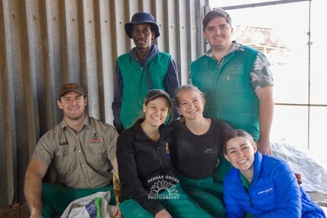 Die Lamb-berjacks. Voor van links is Ivan Coetsee, Lize-Mari Snyman, Este Spoelstra en Cilé-Mari Schultz. Agter is Lesedi Diphofa en Tristan Prinsloo.