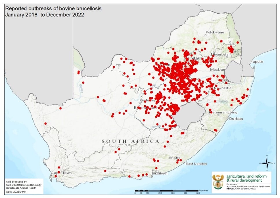 State veterinarians are mostly responsible for reporting the disease, but private veterinarians can also do so. The disease distribution maps generated by the epidemiology department of the state veterinary services (Figure 2) clearly show that this disease is rampant, especially in beef cattle herds.